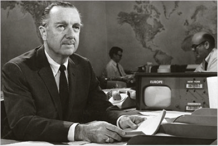 Walter Cronkite at the anchor desk of the CBS Evening News.